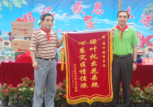 2008年5月,四川汶川地震,牽動(dòng)著每一名綠葉人的心,為使孩子們早日重返校園,綠葉制藥集團(tuán)第一時(shí)間攜手中國兒童少年基金會(huì)捐款100萬元,為綿竹市土門鎮(zhèn)援建兩所“綠葉春蕾學(xué)?!?,隨后又陸續(xù)為孩子送去價(jià)值20萬元的圖書和文體用品。
