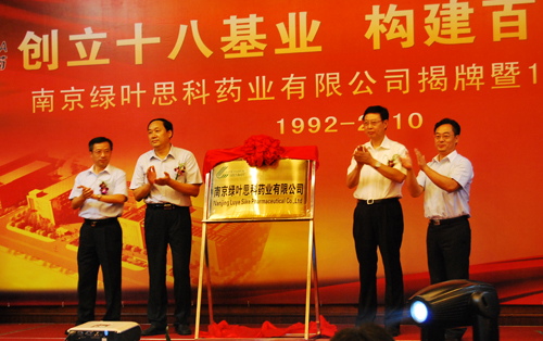 8月18日,南京綠葉思科藥業(yè)有限公司接牌儀式和十八周年慶典活動(dòng)在明發(fā)珍珠泉大酒店隆重舉行。江蘇省及南京市相關(guān)部門的領(lǐng)導(dǎo),浦口區(qū)、高新技術(shù)開發(fā)區(qū)主要領(lǐng)導(dǎo),省、市、區(qū)醫(yī)藥監(jiān)管部門的領(lǐng)導(dǎo)以及開發(fā)區(qū)管委會(huì)主要職能部門的領(lǐng)導(dǎo)參加了揭牌和慶典活動(dòng)。綠葉制藥集團(tuán)劉殿波總裁和南京綠葉思科領(lǐng)導(dǎo)以及公司員工,共同見證了“綠葉思科”誕生這一具有歷史意義的時(shí)刻。