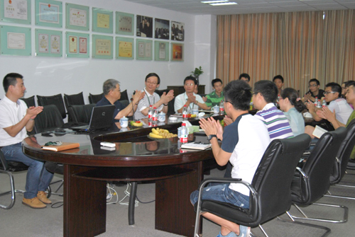 南京綠葉思科研發(fā)中心技術(shù)委員會于2013年7月29日上午9點15分在江北行政樓5樓會議室舉辦了第二期學(xué)術(shù)沙龍。本次學(xué)術(shù)沙龍由程光總經(jīng)理主持,并且非常榮幸地邀請到了Prof. Leaf Huang與研發(fā)中心的技術(shù)人員進行學(xué)術(shù)交流。Prof. Leaf Huang現(xiàn)任美國北卡羅萊納大學(xué)藥學(xué)院分子藥劑系主任、Eshelman講座教授,主要從事微晶、脂質(zhì)體(免疫脂質(zhì)體)的藥物遞送系統(tǒng)的研究,近期主要致力于非病毒載體用于基因治療的研究以及受體介導(dǎo)的藥物靶向研究并取得杰出成就。 此次沙龍會議上Prof. Leaf Huang用幽默風(fēng)趣的語言介紹了其實驗室開發(fā)的LCP脂質(zhì)遞藥系統(tǒng),對目前研究的鹽酸吉西他濱和順鉑兩種納米制劑進行了重點介紹,同時對藥物新制劑的研究提出了一些新穎的觀點和方法。在Prof. Leaf Huang的介紹之后,研發(fā)中心的技術(shù)人員積極踴躍地在新藥研究方面提出很多想法、觀點以及研究中的疑惑進行交流討論,現(xiàn)場氛圍熱烈濃厚,研發(fā)中心技術(shù)人員在這次交流中受到了很多啟發(fā),受益匪淺。程總在會上指出Prof. Leaf Huang實驗室的研究思路值得我們借鑒,也指出科研人員要增強創(chuàng)新意識,未來還要多開展類似的學(xué)術(shù)沙龍進行技術(shù)交流和探討。