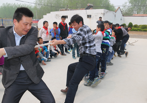 上午,我們在南集朱碼小學(xué)的操場上舉行了慈善捐贈儀式。首先當(dāng)?shù)卣畬G葉思科2013年捐贈的10萬元助學(xué)款的使用情況進(jìn)行了詳細(xì)地匯報,讓我們實實在在感受到了相關(guān)人員的認(rèn)真與務(wù)實,我們的愛心沒有被辜負(fù),讓孩子們的學(xué)習(xí)條件得到了實際性的改善。捐贈儀式后大家與孩子們進(jìn)行了拔河、踢鍵子等互動游戲,同他們展開了另一種形式地交流。