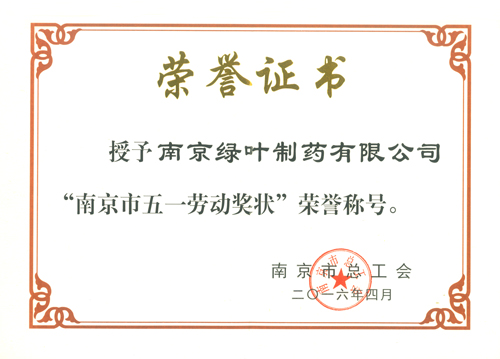 經(jīng)南京高新區(qū)推薦,南京市總工會考核申報及評定,我公司榮獲2016年度“南京市五一勞動獎狀”,我公司在2016年4月29日舉行的2016年南京市慶“五一”表彰活動中領(lǐng)取了證書及銅牌。本次評選全市共有二十家企事業(yè)單位獲此殊榮,公司也是唯一一家入選的醫(yī)藥制造企業(yè),本次榮譽是繼2013年公司榮獲“江蘇省五一勞動獎狀”后又一團隊榮譽。