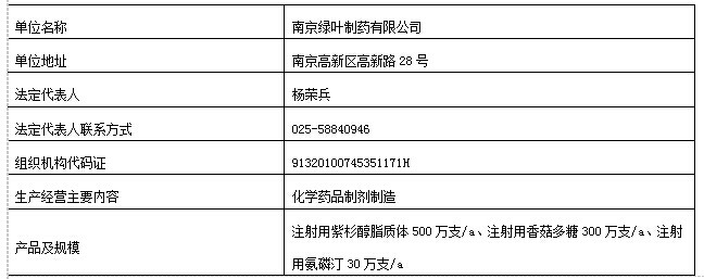南京綠葉制藥有限公司系香港上市公司綠葉制藥集團(tuán)旗下全資子公司,是致力于腫瘤等領(lǐng)域藥品的研發(fā)、生產(chǎn)和銷售為一體的國(guó)家級(jí)高新技術(shù)制藥企業(yè)。公司位于國(guó)家級(jí)開發(fā)區(qū)——南京高新技術(shù)產(chǎn)業(yè)開發(fā)區(qū)內(nèi),占地面積4萬(wàn)多平方米。公司現(xiàn)有自主研發(fā)生產(chǎn)具有知識(shí)產(chǎn)權(quán)的藥品包括“力撲素”(注射用紫杉醇脂質(zhì)體)、“天地欣”(注射用香菇多糖)、“天地達(dá)”(注射用氨磷汀)等。