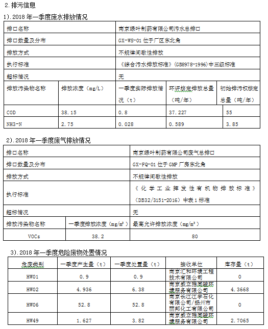 一季度排污信息: