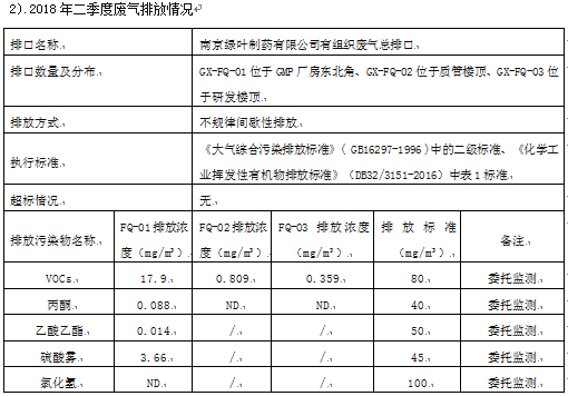 南京綠葉制藥有限公司廠區(qū)污水站和廢氣處理裝置于2010年3月與公司新建GMP廠房項(xiàng)目同時(shí)設(shè)計(jì)、同時(shí)施工,同時(shí)投入使用,2013年1月通過環(huán)??⒐を?yàn)收。2015年2月通過清潔生產(chǎn)審核, 2016年5月一次性通過ISO9001:2008、ISO14001:2004和OHSAS18001:2007管理體系的認(rèn)證。廠區(qū)內(nèi)雨污分流,污水經(jīng)污水管網(wǎng)匯聚至廠區(qū)污水站,經(jīng)微電解+水解酸化+接觸氧化法工藝處理達(dá)國家污水綜合排放標(biāo)準(zhǔn)三級后排入橋北污水處理廠,日處理污水量約200t。2017年按照《江蘇省化學(xué)工業(yè)揮發(fā)性有機(jī)物排放標(biāo)準(zhǔn)》DB32/3151-2016排放標(biāo)準(zhǔn)對廢氣處理裝置進(jìn)行提標(biāo)改造,增加一級水噴淋,將活性炭改為再生,目前處理工藝為兩級水洗+活性炭吸附再生,達(dá)到大氣污染綜合排放標(biāo)準(zhǔn)二級后15米高空排放。